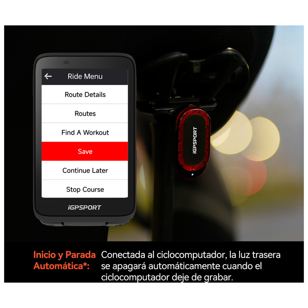 Basado en la detección de luz del ciclocomputador, la luz trasera se enciende automáticamente cuando oscurece o al ingresar a un túnel, y se apaga automáticamente durante el día o al salir del túnel, sin necesidad de operación manual, proporcionando protección inteligente para tus recorridos nocturnos.